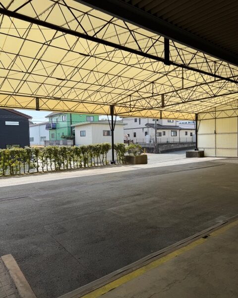 ・搬入車両転回スペースには大型テント屋根有り