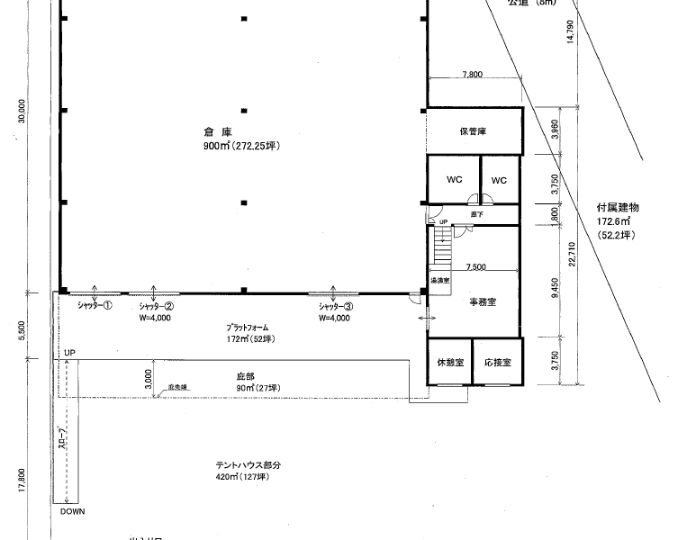 ・入口シャッター幅:4m、梁下有効高:5m